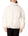 This coat in white offers a classic silhouette with a tailored fit. The soft fabric ensures warmth and comfort throughout the colder months.