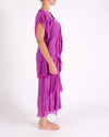 Magenta Short Sleeve Raw Edge Multi Layer Sequin Neck Trim Maxi Dress