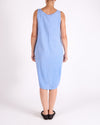 Ocean Blue Placket Front Sleeveless 2 Pocket Raw Edge Dress