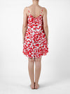 Tomato Spaghetti Strap Dress with Ruffle Hem and Abstract Tropical Print