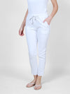 These White joggers blend comfort and style with a relaxed pull-on design and an adjustable drawstring waistband. A subtle bead detail along the leg adds a touch of elegance, making them perfect for casual days or dressed-up lounging.