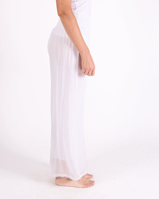 White Fold Over Waist Band Pant