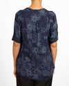 Midnight Placket Front Roll up Sleeve Sequin Pocket Floral Top