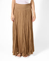 This maxi skirt in birch features a fold-over band for comfort. The flowy silhouette and raw edge hem add a casual chic touch.