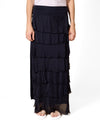 Midnight Pull On Wide Band Combo Multi Raw Edge Lined Maxi Silk Skirt