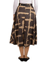 Pewter Pull On 2 Pocket Belted Flare Lazer Cut Maze Print Skirt