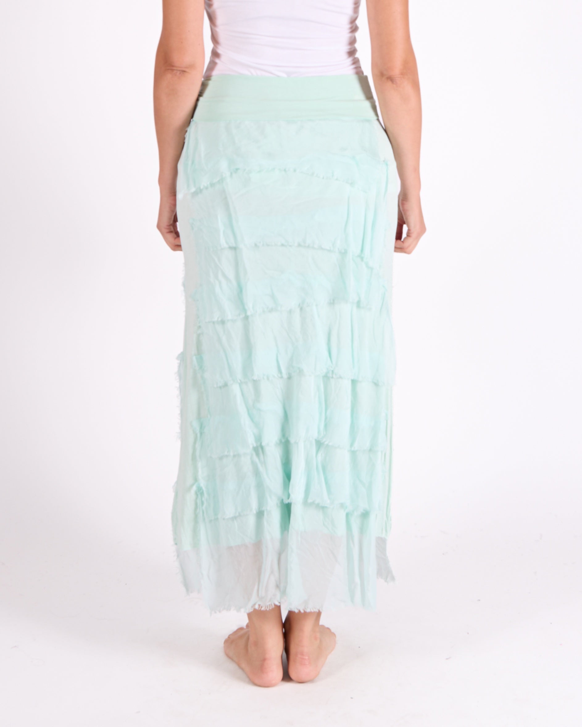 Seafoam Fold Over Waist Band Raw Edge Multi Layer Skirt
