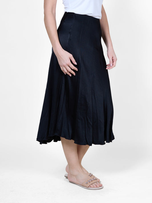 Midnight Pull On Wide Band Combo Multi Raw Edge Lined Maxi Silk Skirt