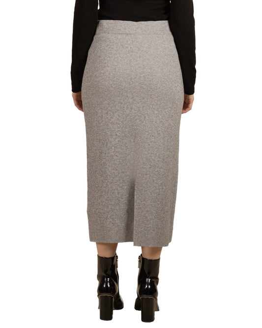 Grey Pull On Button Front 2 Pocket Back Slit Skirt
