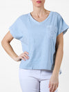 Airy blue T-Shirt with Floral Embroidered Pocket and Eyelet Back Panel