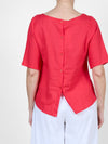 Red Cuffed Short-Sleeve Button-Back T-Shirt Blouse