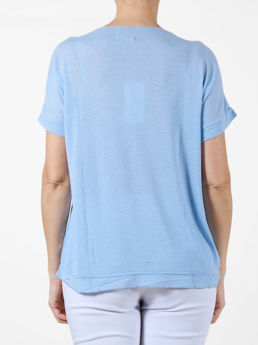 Sky Blue T-Shirt with Metallic Silver Speckles