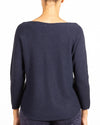 Elevate your casual style with this midnight V neck pullover, featuring a unique reverse seam detail for a modern twist. The long sleeves and relaxed fit offer comfort and versatility, making it the perfect go-to piece for layering or wearing on its own for a chic, effortless look.