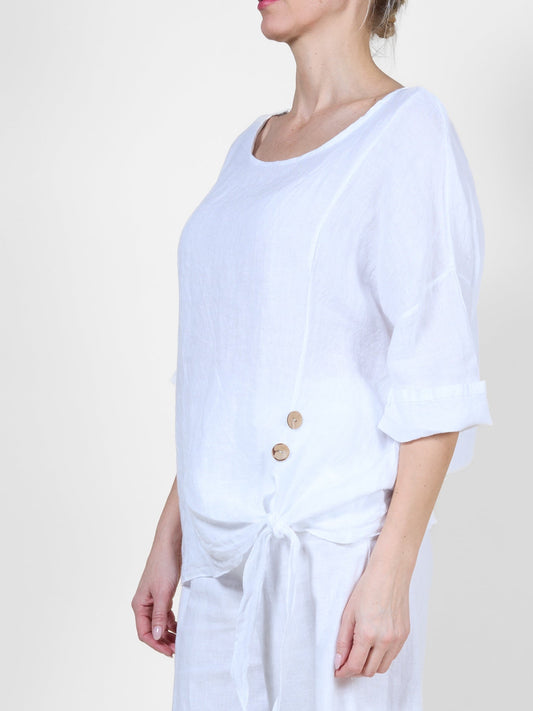 White Short Sleeve Top with Side Tie Detail