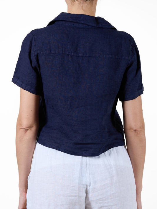 Midnight Short Sleeve Button-Up Blouse