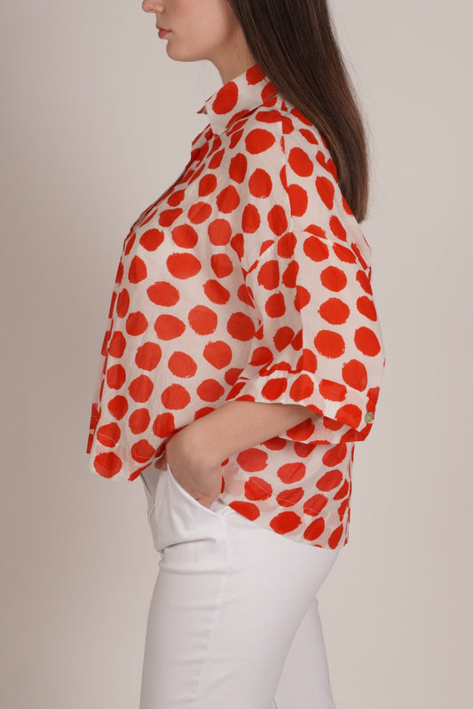 Red Polka Dot 3/4 Sleeve Button-Up Top