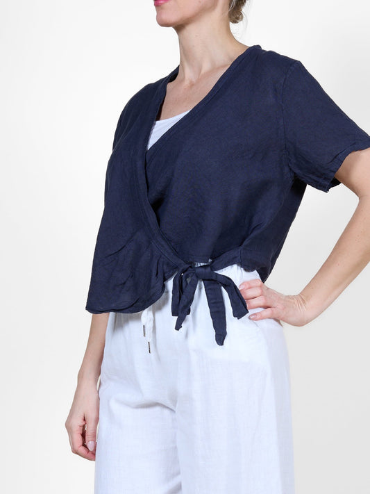 Black Short Sleeve Top with Crisscross Tie Detail