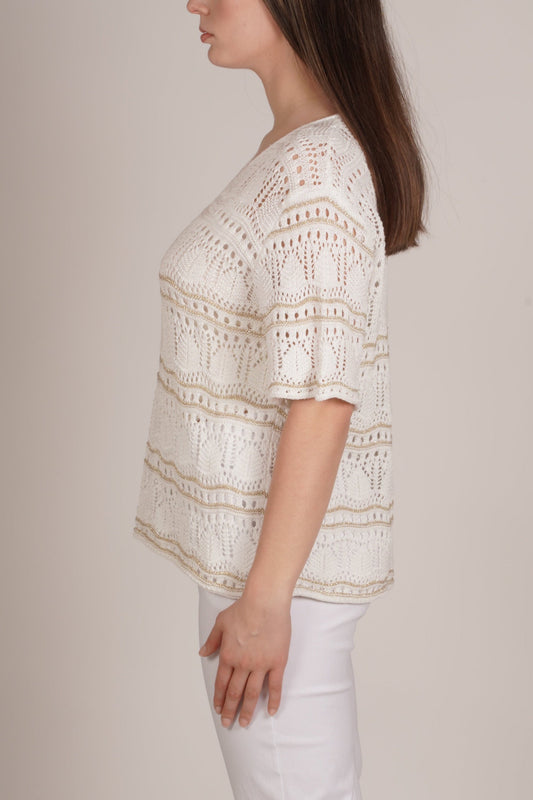 White Short Sleeve Top with Loose Knit Design