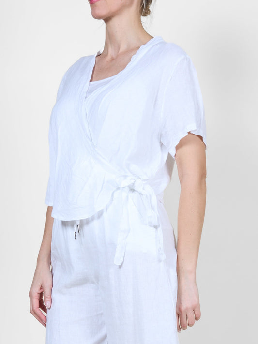White Short Sleeve Top with Crisscross Tie Detail