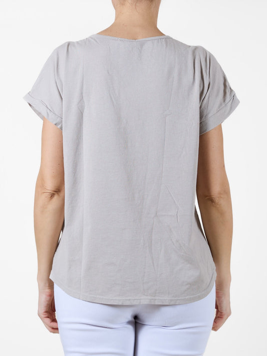 T-shirt beige à motif argenté métallisé à coups de pinceau et à pois