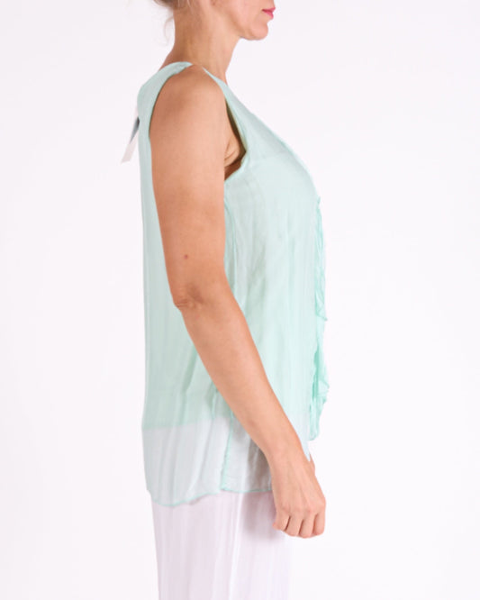 Seafoam Raw Edge Multi Layer Sleeveless Tank Top