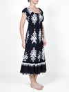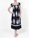 Cette superbe robe noire à épaules dénudées présente un corsage smocké pour un confort optimal et de délicates manches bouffantes pour une touche romantique. La jupe fluide est ornée de broderies contrastées raffinées, créant un look à la fois audacieux et élégant. Un choix parfait pour un style estival décontracté.