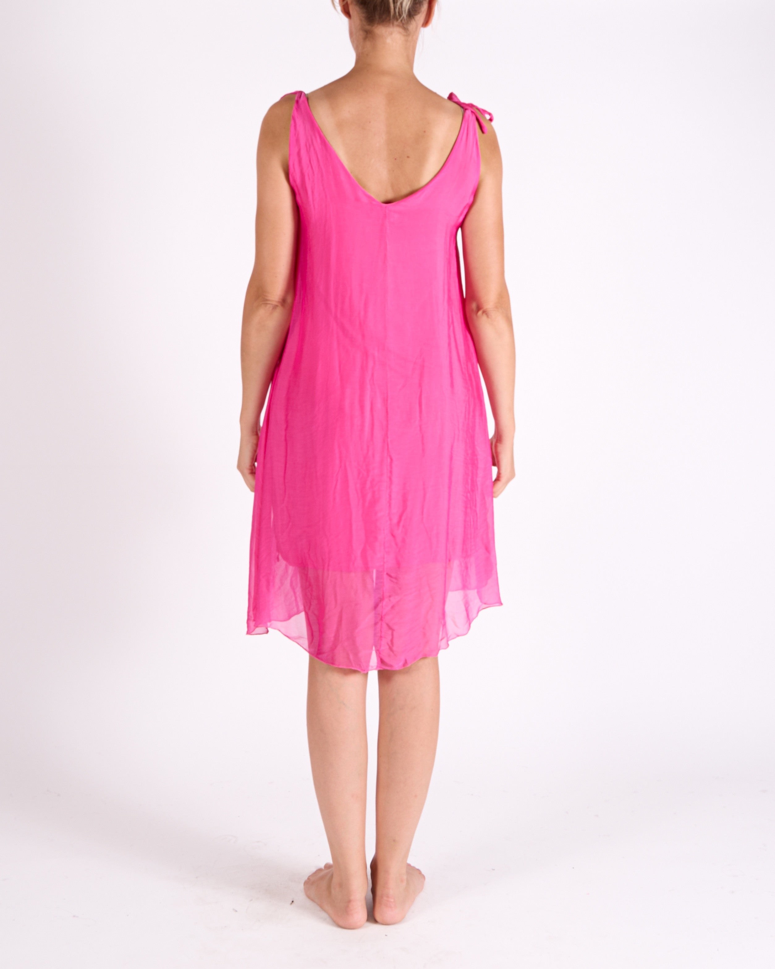 This tie-shoulder dress features adjustable straps for a customizable fit and a flowing silhouette for effortless movement. Lightweight and versatile, it provides comfort and style for both day and evening occasions. Pair with minimal accessories or layered outerwear for a polished, modern look.