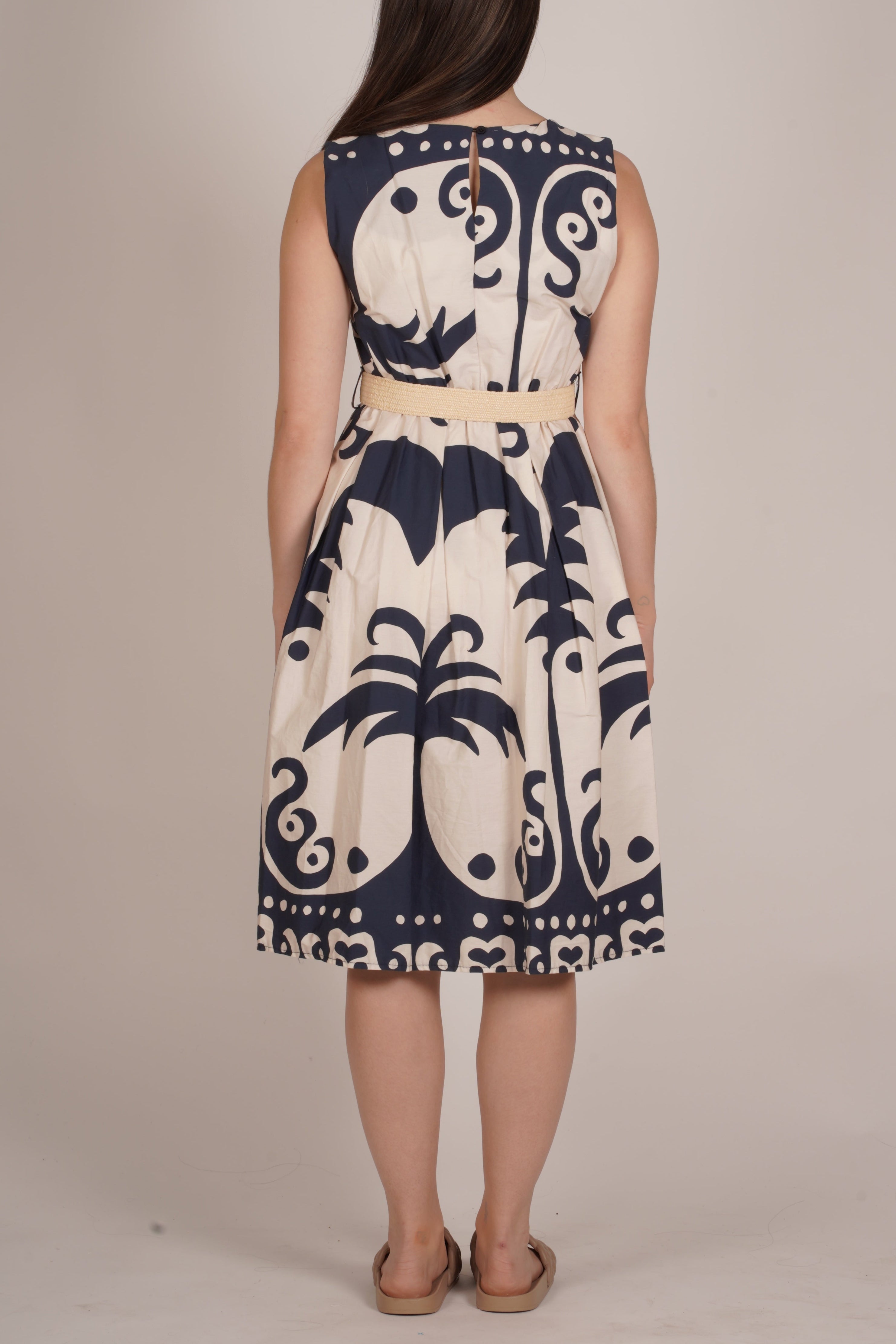 Robe sans manches à imprimé tropical minuit avec ceinture
