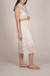 Cette élégante robe blanche est ornée d'une magnifique broderie dorée qui recouvre l'intégralité du tissu, créant une allure sophistiquée et luxueuse. Parfaite pour les grandes occasions, ses détails raffinés et son style intemporel en font une pièce remarquable qui respire le charme et l'élégance.