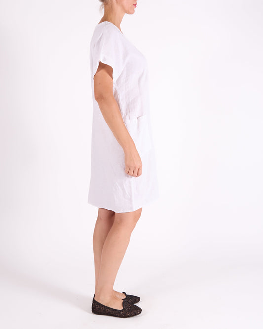 White Placket Front Sleeveless 2 Pocket Raw Edge Dress