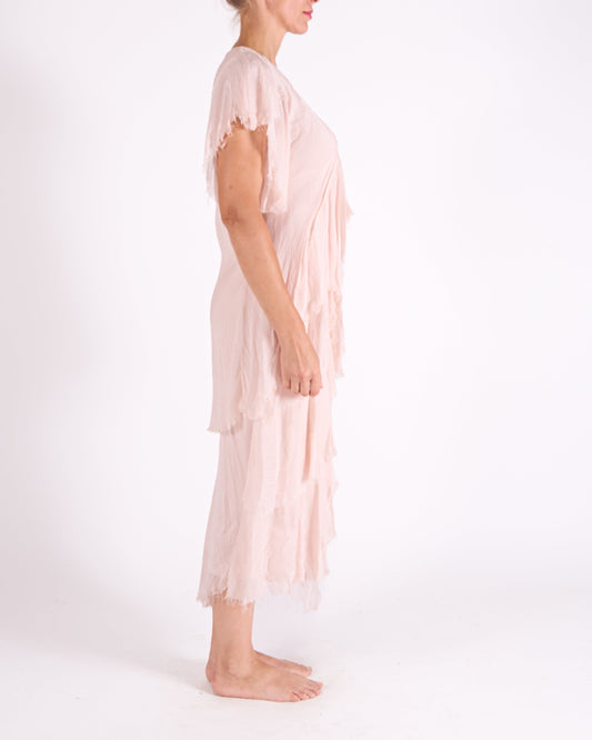 Carnation Short Sleeve Raw Edge Multi Layer Sequin Neck Trim Maxi Dress