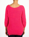 Pull en peluche rose fuchsia à col rond profond dans le dos et fentes latérales