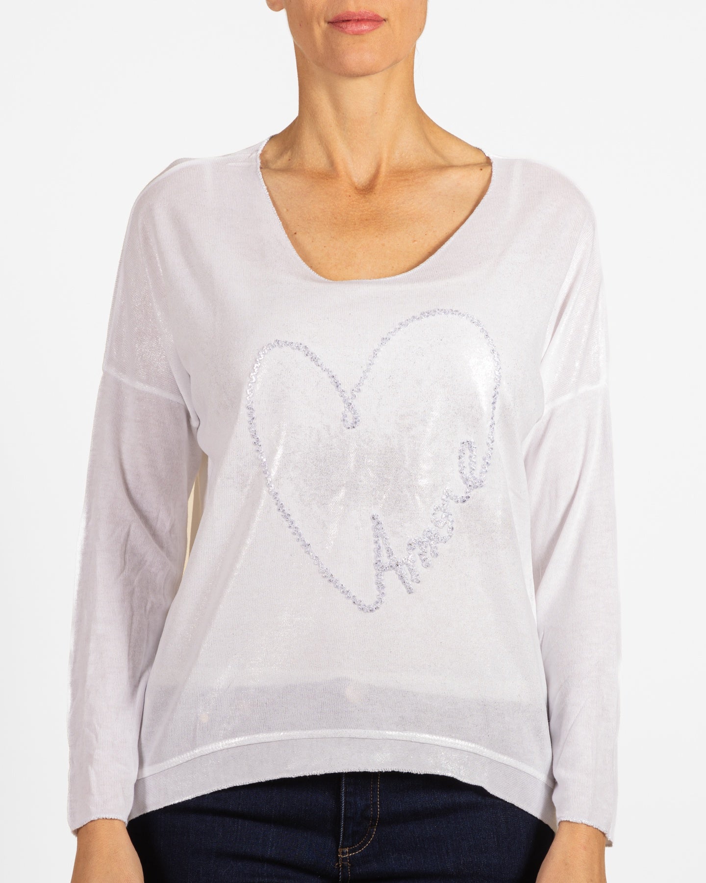 Pull-over ivoire à col bateau et signature cœur
