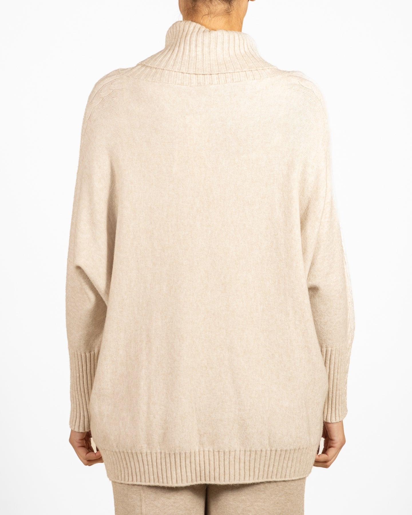 Confortable et chic, ce pull dolman à col châle présente des manches élégantes en tricot torsadé et une riche teinte neige, parfait à superposer ou à porter seul.