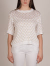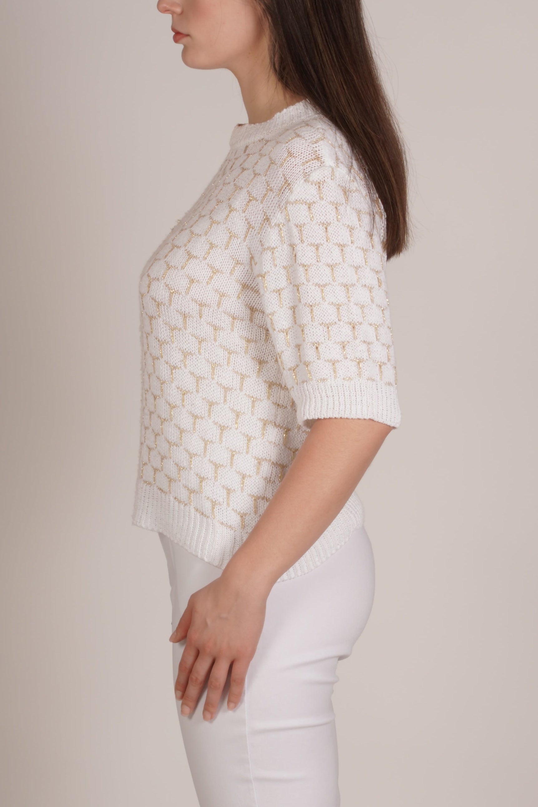 Pull blanc à manches courtes en maille avec motif géométrique hexagonal