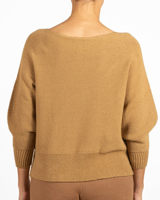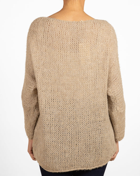 Pull cappuccino à col rond et épaules tombantes asymétrique