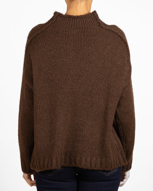 Pull à col montant et coutures latérales inversées couleur espresso