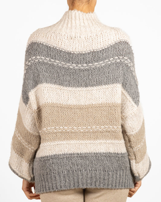 Pull à col montant couleur avoine à rayures multicolores