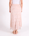 This multi-layer skirt features a fold-over waistband and raw-edge detailing for a modern, relaxed look. Lightweight and flowing, it creates movement and a flattering silhouette. A versatile piece that pairs beautifully with blouses, knits, or tailored tops for polished day-to-night styling.