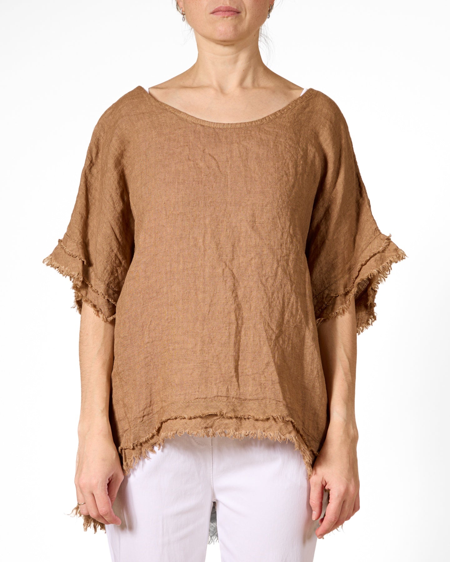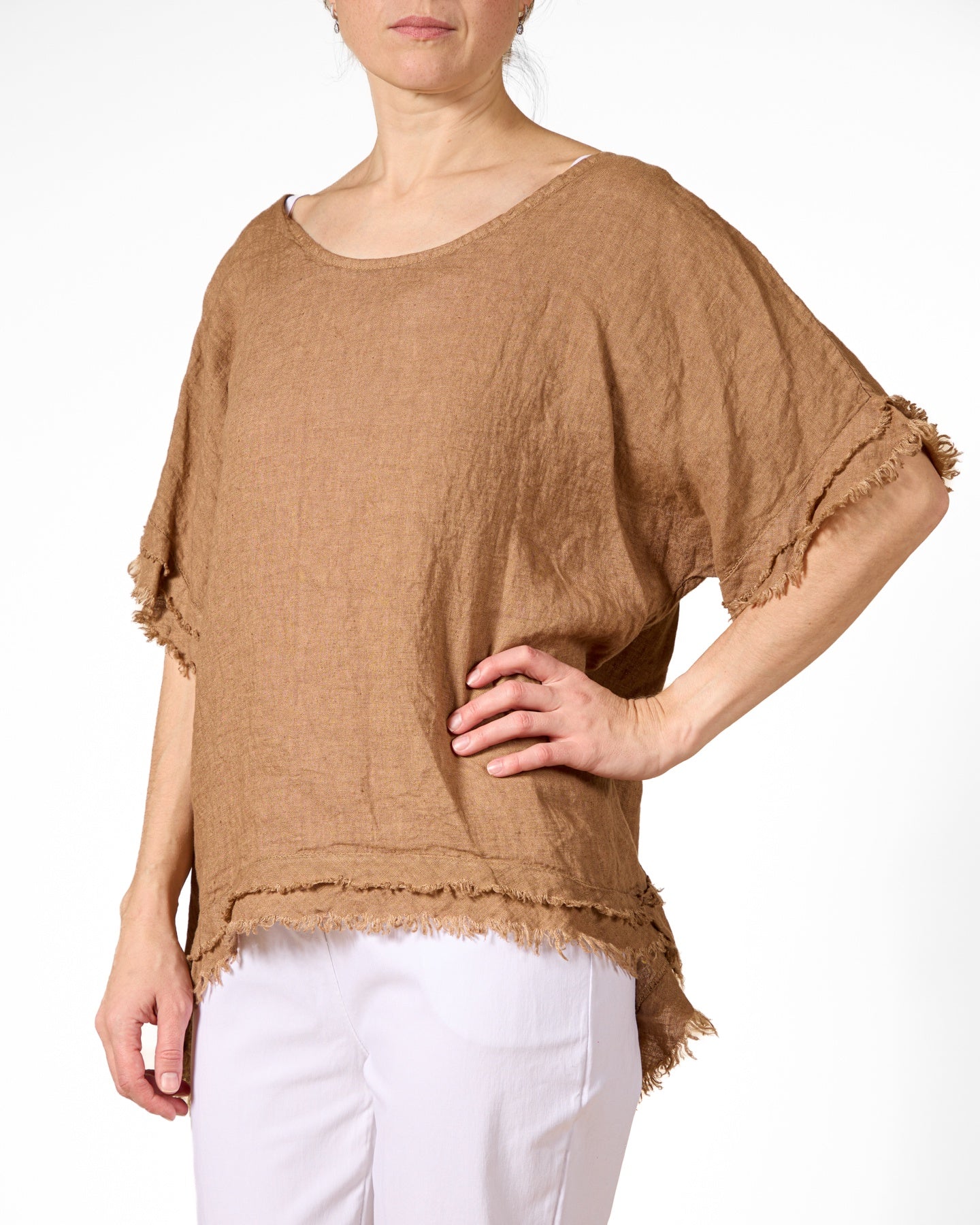 Ce top asymétrique en bouleau présente des bords francs pour un look décontracté et moderne. Sa coupe ample et son tissu doux en font le vêtement idéal pour un style casual.