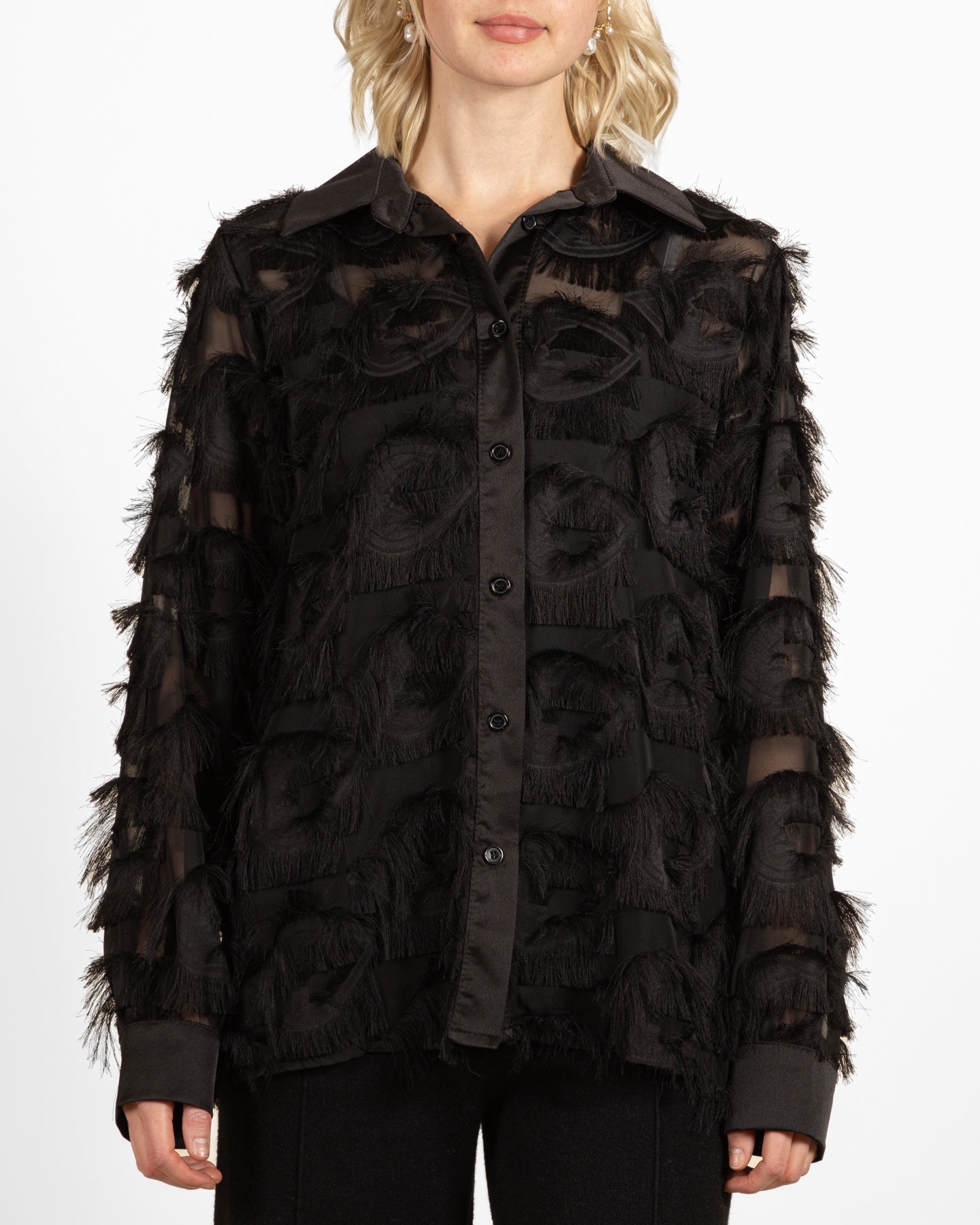 Chemisier noir à boutons sur le devant et cils