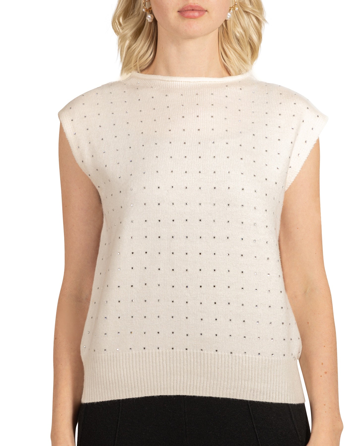 Haut sans manches ivoire à col rond