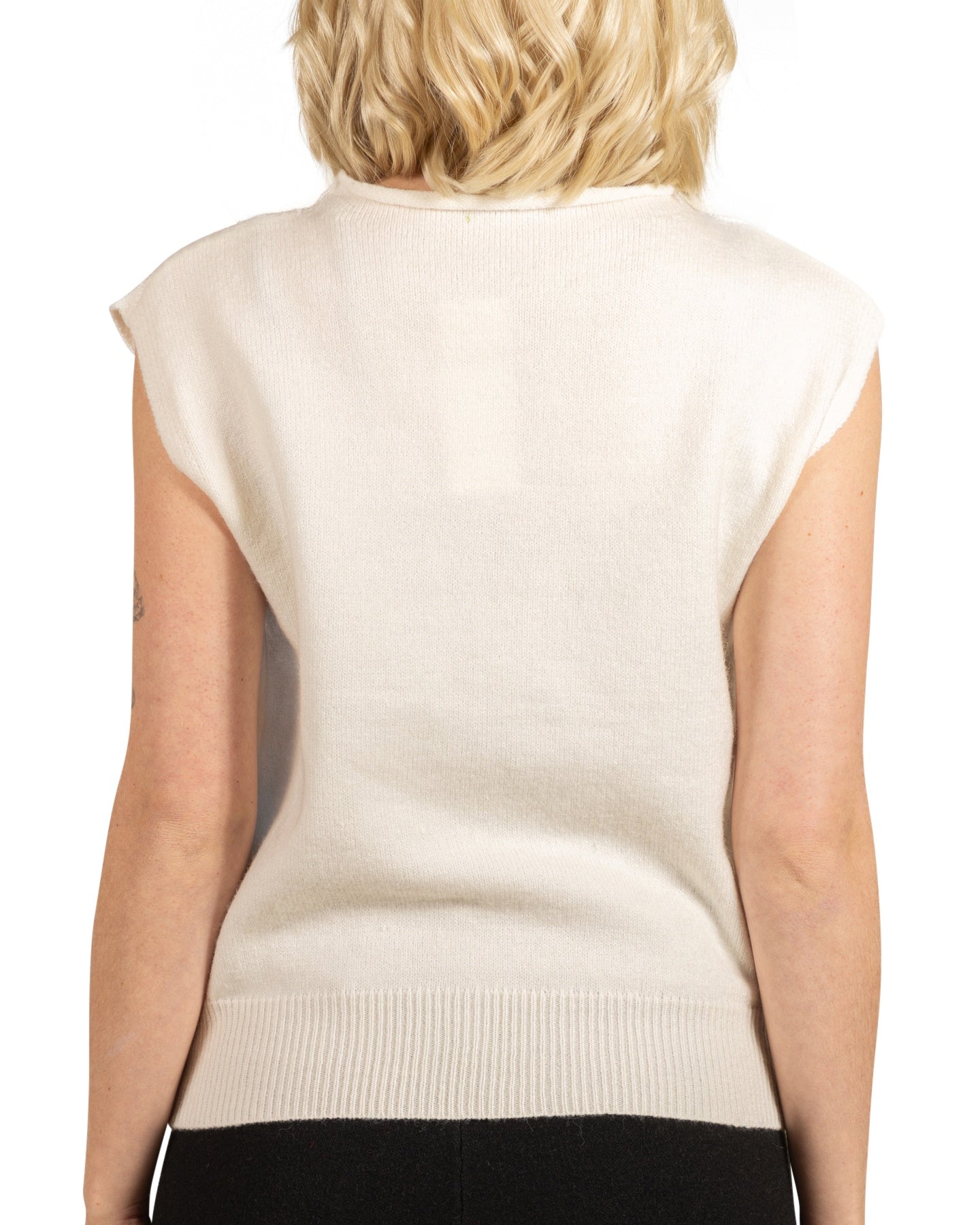 Apportez une touche intemporelle à votre look avec ce top sans manches à col rond couleur ivoire. Son design classique et ses lignes épurées en font une pièce polyvalente à superposer en toute saison.